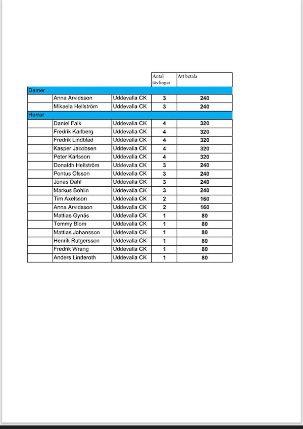 Jag har nu sammanställt årets deltagare i poängjakten som ska betala sina startavgifter ni kan swicha till mig