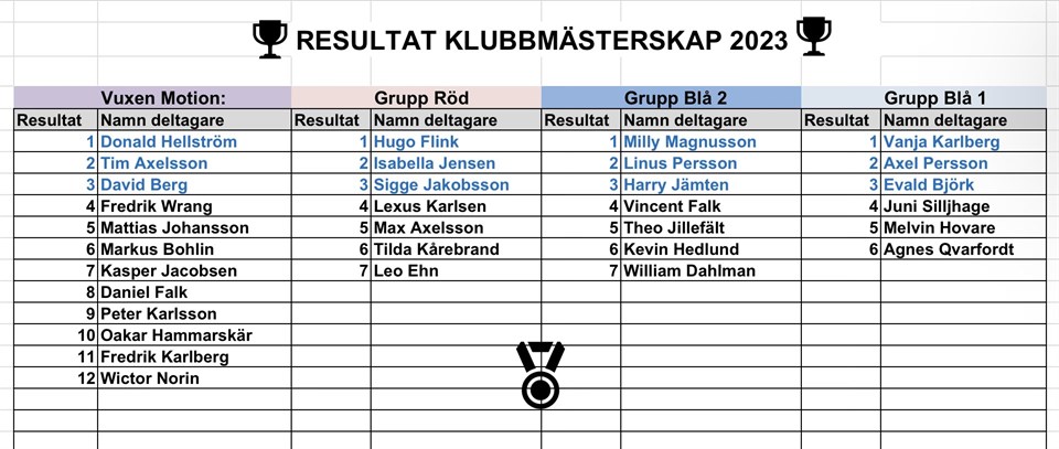 Nu är resultatlistan från klubbmästerskapet 2023 sammanställt! För mer bilder från KM:et, gå in på vår Facebooksida! https://www.facebook.com/groups/111120625589776/ UddevallaCK tackar en än gång för ett lyckat KM med fina insatser och glada deltagare! Bra kämpat av er alla!⭐